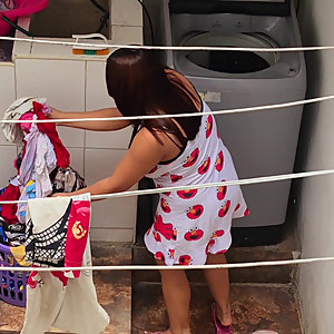 "Handling the Ass of the Latin Brown Cleaner with big tits. US."
