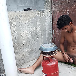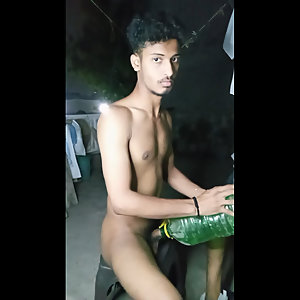 "Indian young boy masturbate using oil. Young boy massage using vaseline at backside of home"