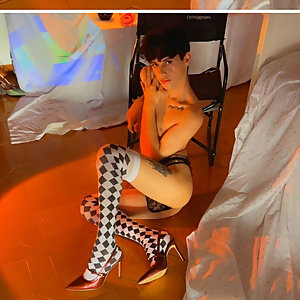"Theatrical Femboy in Heels & Harlequin Stockings - Candles & Sensual Vibes"